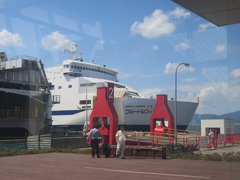 14:21 次のフェリー 昼前に到着したフェリーは定刻より2時間ほど遅れて、14時に青森に向け出港していきました。 続いて、14時発のフェリーが3時間遅れで入港してきました。 スタッフに、前のフェリーの時に何のインフォメーションも無かったんだけど。とクレームを入れたところ、うっかり呼び出しを忘れられたようだ。 (-_-;) こんな状況下じゃ、そんなこともあるよね。 で、このフェリーには乗れるらしい。 呼び出しを忘れられないよう、乗船ゲートの一番前に陣取って、順番を待つことにします。(笑) |