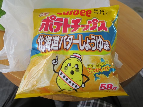 12:35 北海道限定 先ほど到着したフェリーの乗船が始まった様です。 ターミナル内で待っていますが、呼び出されません。 この便には乗れないようです。 そう言えば、今日は何も食べてません。 飲物は、フェリーを下りるときにペットのミネラルウォータを買ったので、それだけ。 唯一ターミナル内のキオスクみたいな売店が開いていたので、売れ残っていて食べられそうなものを。 (ほとんどの品物は売り切れ状態) 北海道限定のポテチがあったので、買ってきました。 これで朝飯兼昼飯。 北海道限定、旨し。(お腹空いているからね。) 函館朝市での朝食は夢と消えました。(笑) |
