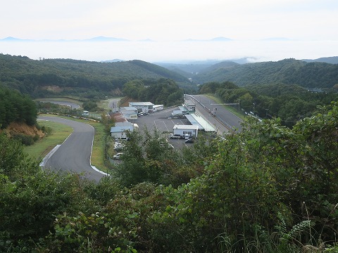 7:49 お決まりの一枚 8時前にゲートが開いて、サファリパークの中を通り、エビスサーキットの東コースに向かいます。 途中コースが見下ろせるお決まりの場所で写真を一枚。 今回初めて、くっきりと雲海が・・・・・。 この写真じゃわからないですね。 |