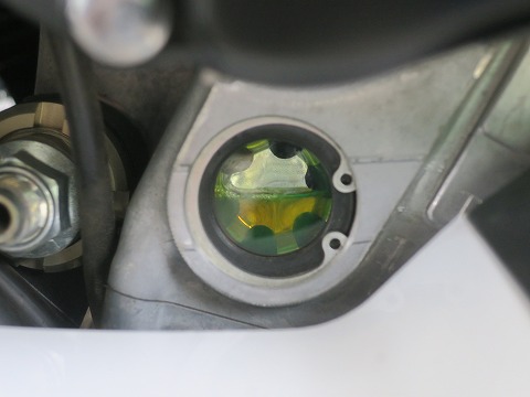 8:19 オイルレベルを さて、バイクを下ろして、まずは先週交換したオイルのレベルをチェック。 先週の日曜日にオイル交換して、バイクを動かしてないので、あらためてバイクを水平な場所に置いてレベルをチェックです。 ちょっと少なめですね。 (オイル交換した自宅の前は結構な坂です。 ちょっと足しておきます。 |