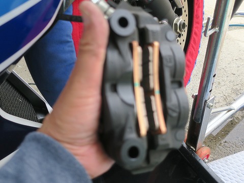 8:33 パッドを交換 タイヤを暖めている間にブレーキパッドを交換します。 GSX-Rの走行距離はここまで 12,674 km。 パッドも少し減ってきてブレーキのタッチが悪くなったと感じていたので、この機に交換しようと思います。 |