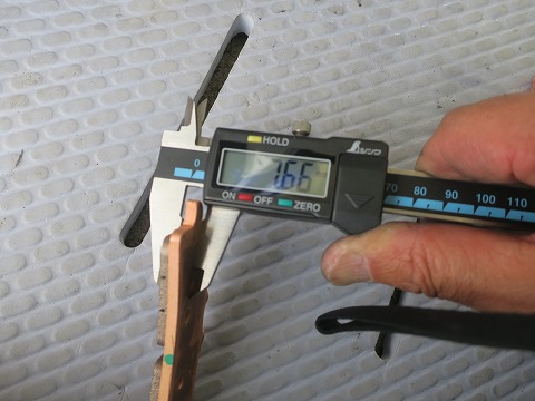 9:13 厚みをチェック ブレーキパッドの厚みを計っておきます。 今まで使っていたパッドの残厚は大体 6.4〜6.5mmぐらいでした。 |