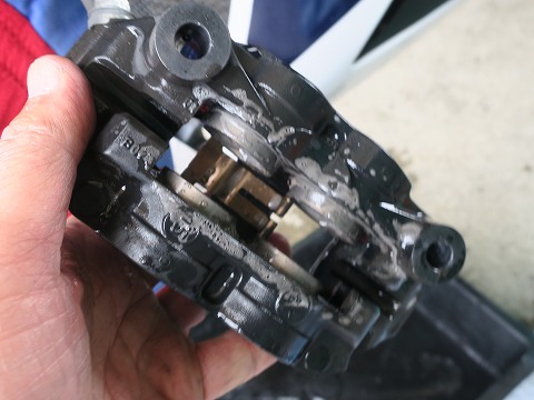 8:59 交換 ピストンを掃除して、新しいパッドに交換しました。 (ピンボケェ〜。) |