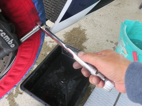 9:17 ピストンを洗う 右側のパッドの交換が終わったら、左側です。 古いパッドを外したら、中性洗剤を使ってピストンを洗っておきます。 中性洗剤で洗うと、灰色の泡がたちます 汚れてましたね。 ピストンがきれいになったら、新しいパッドを取り付けてます。 GSX-Rのピストンは梨地(?)仕上げっぽくて、洗ってもピカピカにならないので、イマイチ洗い甲斐がありません。 |