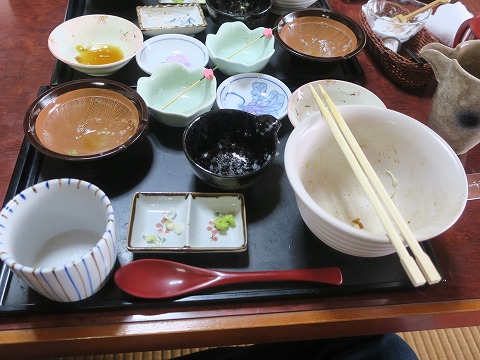 12:53 完食 そば汁もそば湯と一緒に最後まで飲んで、完食です。 自分が食べた後は、米粒一つ残りません。(笑) (でも、わさびが残っています。) 「うん、美味しかった。」 「うん、ちょっと食べ過ぎた。」(笑) |
