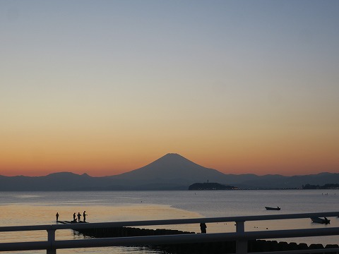 17:15 帰りも逗子海岸から 箱根峠で流れ解散した後は、箱根新道で箱根の山を下り、西湘バイパスを経由して、国道134号線を東進して朝も写真を撮った逗子海岸まで戻ってきました。 やっぱり箱根新道は後半は渋滞。 西湘バイパスも出口が渋滞。 江ノ島までの国道134号線は新湘南大橋が2車線化されて、まあそれほどでもなし。 でも鎌倉先、ここ逗子海岸までの国道134号線は片側1車線と言うこともあって渋滞でした。 今日のツーリングはほんと一日快晴でしたね。 夕焼けの中に浮かぶ富士山を見ることができました。 |
