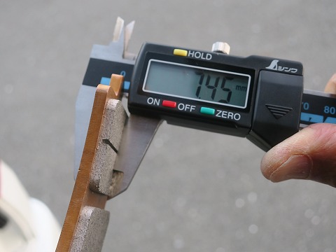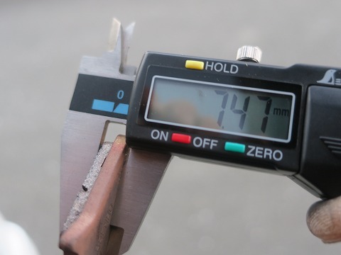 厚さを測っておくと、新品で 7.42〜7.45o でした。