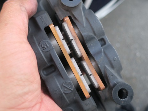 キャリパーから古いブレーキパッドを外して、新しいパッドを取付け。