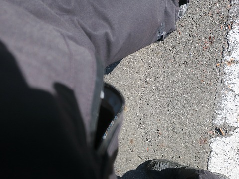 13:08 ベンチレーションを と、その前に、この写真は? 今日は春秋用のツーリングパンツを履いてきました。 お昼を過ぎて、天気も良くて暑いので、走り出す前にベンチレーションのファスナーを開けておきます。 この季節でも、天気さえ良ければ、中は蒸れます。 |