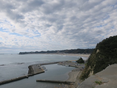 9:47 高台から 塩屋崎灯台はちょっと高台にあります。 右手の方角を見ると昨晩泊まった”ホテル塩屋崎”が見えます。 今朝は雲が多くて、海の色もイマイチでどんより。 晴れていれば、きっと爽快でしょうね。 |