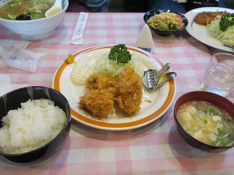 14:30 注文は 店内は、と言うより店の外観もそうですが、喫茶店っぽい造り。 注文は、お店の看板が”とんかつ”になっているので揚げ物押しと言うのを鑑みて、トンカツにするかちょっと迷って、旬の季節となってきたカキフライにしました。 (下手なお店で頼むと、冷凍もんの危険性があるんですけどね) 供されたカキフライは形が不揃いですが、大きめのが3個とボリューミー。 ちゃんと、自家製。 「おっと、当りでしたね。 」 (^_^)v それでは、熱々の内に「いただきましょう!」 アイスエイジさんが頼んだタンメンがちょっと美味しそう。 ( ̄。 ̄) |