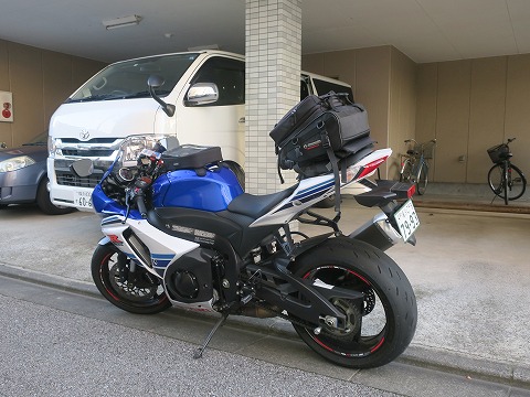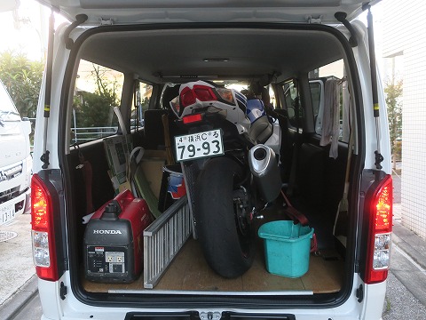 16:17 仕舞って仕舞い ツーリングが終わったGSX-Rはハイエースの後部荷室へ。 今晩は社宅に泊まって、明朝横須賀の自宅に戻ります。 3連休だと、一泊二日のツーリングに行っても、余裕がありますね。 週明けの月曜日は、横須賀の自宅からアクアラインを使って、千葉の仕事場に直行の予定です。 (おわり) |