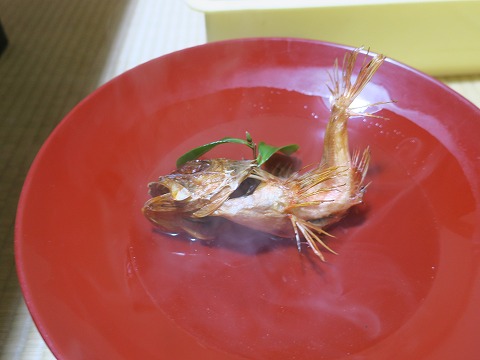 17:52 骨酒 骨酒です。 宿の予約をするときに料理が選べるんですが、ホームページを良く見てなかった。 骨酒が付いてきて、ちょっと嬉しかったりして。(笑) カサゴだと思いますが。 焼きがあまかったのか、ちょっと生臭くかんじました。 それとも、こんなもんなのかな。 自分の口にはちょっと合わず。(残念) |