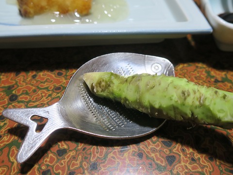 17:56 本わさび わさびの産地 伊豆らしくわさびが丸々1本付いていました。 新鮮でやっぱり生のわさびは香りが良いです。 刺身の味が引き立ちますね。 |