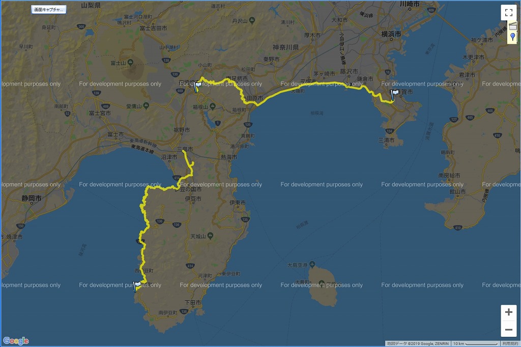 2日目の道程:雲見温泉〜土肥〜戸田〜函南〜三島〜御殿場〜小山町〜小田原〜横須賀(自宅):234.4 km