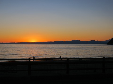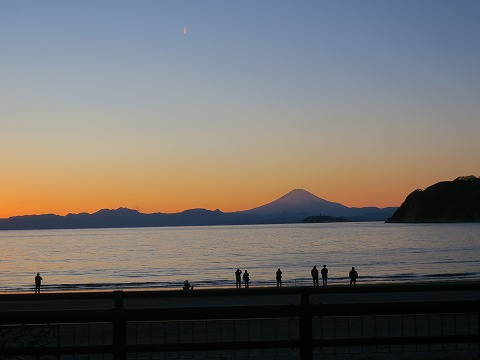 砂浜には、人が出ていてみんねスマホで夕景の富士山を撮ってましたね。