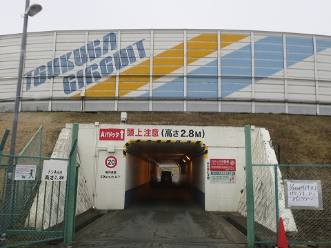 6:36 筑波サーキットに到着 筑波サーキットに到着。 まだちょっと濡れている部分がありますが、走り始めるまでには乾くでしょう。 (雨が降らなきゃね) 1コーナーの下を走る地下トンネルを通ってインフィールドに向かいます。 |
