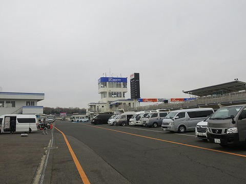 6:45 パドックに インフィールドに入りました。 空いてますね。 たしか降水確率が30%とか40%とかあったので、キャンセルした人が多かったんでしょう。 雨さえ降らなければ、空いている方が走りやすいので歓迎ですね。 ハイエースはいつも駐めることが多い、ピットの反対側のS字裏に駐めます。 |