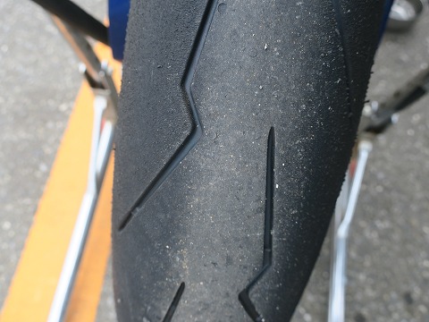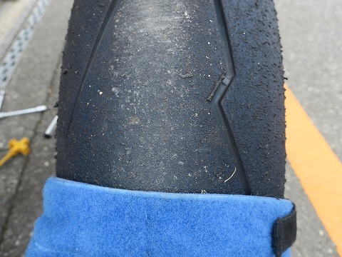 7:38 リヤタイヤ リヤタイヤも中古ですが、こっちの方がもう少し減っているかな。 でも、今日と次回の2回ぐらいは大丈夫そうです。 |