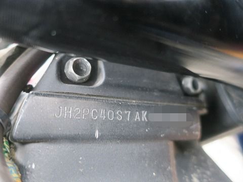 7:42 年式不明 さっきも書きましたが、このCBR600RRのちゃんとした年式が今のところわかりません。 形式は外観から現行型の”PC40”だとはわかっているんですが、細かい年式が不明です。 フレーム番号を見ると、PC40の後ろに”S7”とあるので、たぶん2007年製。 同じPC40でも、年式によって微妙に部品や標準のセッティングとかが違うんですよね。 サービスマニュアルとかも、年式が違うと内容が違うので、準備ができません。 ※ 帰ったら、HRC に聞いてみよう。 |