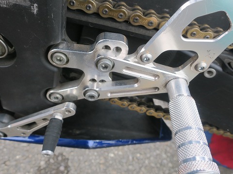 8:58 ファイナル 左のステップも、前側の低い方。 まあ、左右で高さとか前後の位置が違うわけないけどね。(爆) 位置を確認したら、増し締め。 結構、ステップとかネジが緩みやすいですから・・・。 走っていて、ポロッとかなると洒落になりませんから。 あとはファイナル・ギア。 自分が前のCBR(PC37)で走っていたときのスプロケットは前が15丁、後ろが45丁でした。 引き渡されるときに、前15丁の後ろ44丁って言われました。 ちょっとロングだけど、これもとりあえずこのまま走ってみます。 |