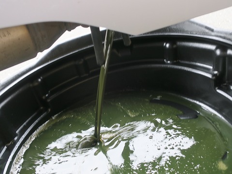 14:16 オイルを抜く ガメラの血の色。 やっぱり、あんまりよごれてませんね。 |