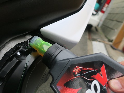 14:39 注入 ドレンボルトを締めたら、オイルを注入。 「こぼれてますよ!」 ( ̄。 ̄;) |