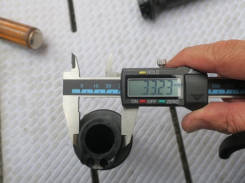 15:07 GSX-R の直径は 外したGSX-R 純正のスロットルのワイヤを巻き取る部分(タイコ)の直径は、大体 33mm。 |