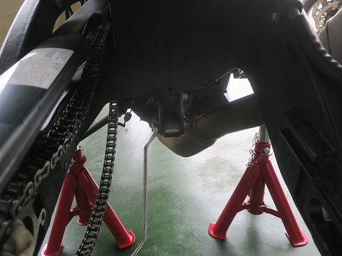 15:17 リヤサスも リヤのサスペンションもはずして、スイングアームがブ〜ラブラ。 馬はこんな感じで使ってます。 (赤いのだけど、説明用にはあまり良い写真とは言えないな) バイク専用。 J-TRIP製。 買っちゃったので、積極に使わないとね。 と言っても、CBR600RRと合わせても、自分は年に1〜2回しか使わない。 とっても、コスパの悪い道具です。(爆) でも、リヤサス外すときには必需品と言って良いかも。 これが無いとリヤサス周りのメインテナンスはちょっと大変。 |
