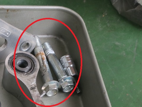 15:12 バラしちゃった バラしちゃった。 (ーー;) 戻せるかなぁ〜。 は冗談として。 せっかくここまでバラしたので、リヤのスイングアームもバラしちゃおうかと思ったけど、戻せなくなると困るので、勇気がなくて今回はリヤサスまで。としておきました。(笑) さて、昔のバイクはリンクとかを組むときに新車でもグリスとかを縫ってあったけど、最近のバイクは塗ってない。 って言う話をブログとかでちょくちょく見かけます。 自分もこのGSX-Rのタイヤ交換したとき、ブレーキキャリパーのボルトとかにグリス塗ってなくて電触を起こしているのをみました。 なので、リヤサス周りも1回バラして、グリスアップしておきたかったんですよね。 で、実際ボルト、右上のやつ、拡大してトリミングしてみると・・・・。 |