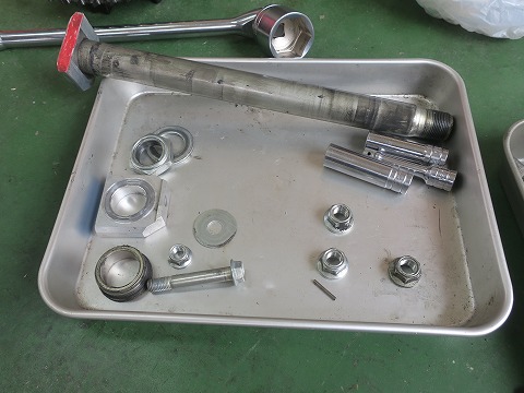 15:12 ローラーベアリングが リヤのアクスル周りとか。 リンクのボルトとか。 右下の部分、ボルトに混ざって細い棒が・・・・。 リンクのローラーベアリングのニードルがポロッとね。 ポロッと落ちちゃった。(゚o゚;) 後で戻しておきます。(笑) |