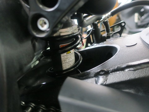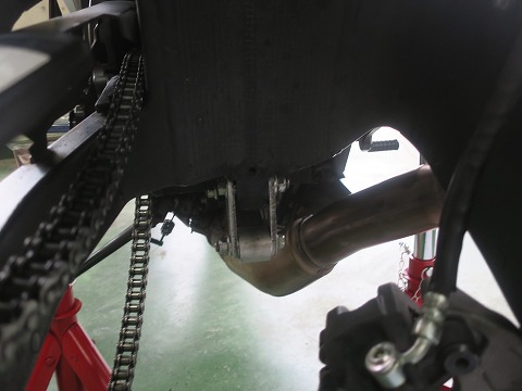 16:53 組み付け リンク周りも組み付け。 リンクの下のボルトが右側から入れてあるんだけど、マフラーに干渉して、最初に入れておいてから組まないと入らない。 なので、左側から入れようと思ったんだけど、左側から入れると締め付けのときにトルクレンチが入らなくなっちゃう。 ので、組立難いけど、やっぱ右側からボルトを入れて左側にナットになるのが正解。 左側からやってみてダメだったのは、秘密の話。(笑) リンクをざっと組み立てたら、指定トルクで締めていきます。 |