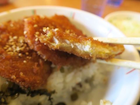7:17 迅速に ソースかつは、迅速にお客さんに提供するため火が早くとおる様肉薄め?(笑) そんな気遣いは無用と言いたい。 朝でも、昼でも、夜でも、厚めが食べたい。 |