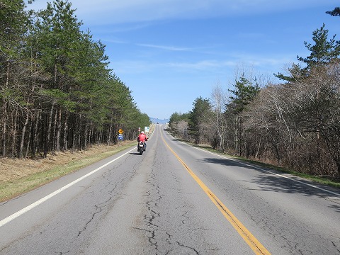 8:56 かなり真っ直ぐ 鬼押しハイウエイを快走中。 浅間山の北麓を走る鬼押しハイウエイはほぼ直線。 でもアップダウンはありますが、かなり真っ直ぐな道が続きます。 ただ単に走るには退屈ですが、周囲の景色を眺めながら走れば快適です。 |