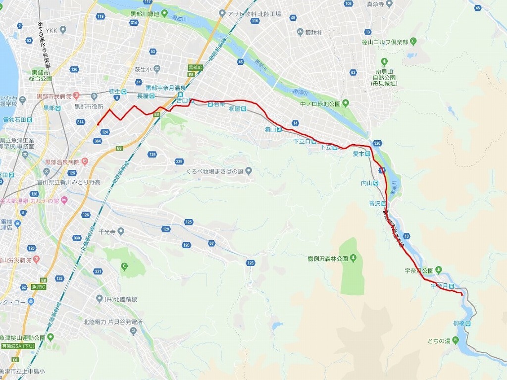 | 道程:きときと寿し〜ホテル黒部:17.62 km | |