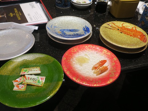 15:00 ようやく 結構待って、バタバタと店内に入って、なんとなく食べ始めちゃいました。(汗) ゴールデンウィーク対応で、店内のカウンター席はすべてクローズ。 テーブル席のみでの提供になっていました。 今日はレーンには何も流れていません。 注文のみ。 カウンターでは無いので、板さんに直接オーダーは出来ません。 タッチパネルでの注文に限定されていました。 テーブル席に大人5人で座って、注文するタッチパネルが1つと言うのはちょっと厳しかったかな。 そして、ゴールデンウィークも後半と言うことで、ネタ切れもあったりして。 デジカメの撮影時間を見たら、もう3時になってたんですね。 |