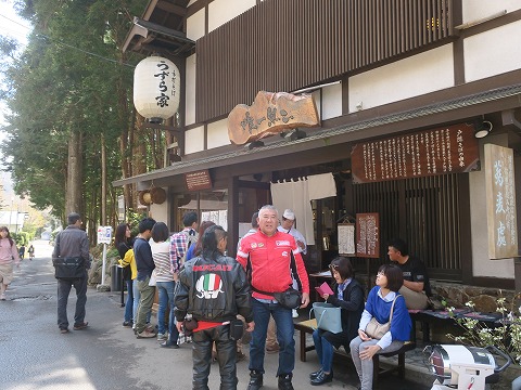 10:51 うずら家に並ぶ ゴールデンウィーク ツーリング、2日目のお昼は長野市の中心部から北西に20kmほどに位置する戸隠までやってきました。 戸隠と言えば、蕎麦。 戸隠と言えば”うずら家”。 wiki によれば、「戸隠そばは、岩手県のわんこそば、島根県の出雲そばと共に日本3大そばの一つとされる。」 と書いてあるけど、 「そーだねぇー。」と同意するのは、岩手の人と、島根の人と、戸隠の人ぐらいだろう。 それ以外の土地の人は、「そんなこと無えだろう。」 となかなか同意しないと思う。(笑) 話が逸れた。 うずら家には11時前に到着したけど、もう既にウェイティング状態。 約1時間ほど待ち。と言われた。 けど、今日はちゃんとしたところはどこに行っても混むだろうから、待つことにします。 |