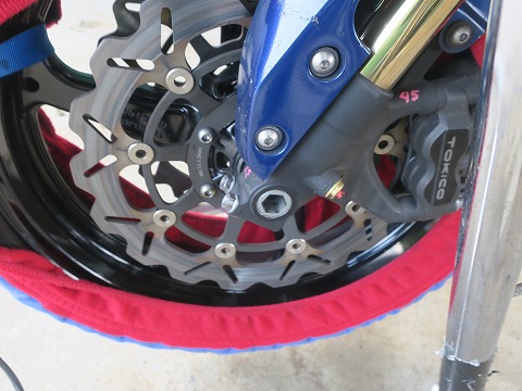 15:12 ブレーキ ディスクについて 3本目の走行を終わりピットに戻って、忘れないようにメモ代わりに写真を撮っておきます。 これは、ブレーキ ディスクについて。 午前中の1本目の走行のところでも書いたけど、今付いているBRAKING社製 のディスクは”ガツン!”て効きます。 立ち上がりが早いので、自分にはちょっとクイックすぎる感じです。 brembo の方がコントロールはしやすそう。 なので、brembo をお買い上げするか、悩みどころ。 brembo にするとなると1セットで50,000円くらいの出費になっちゃいますからね。 (×_×) |