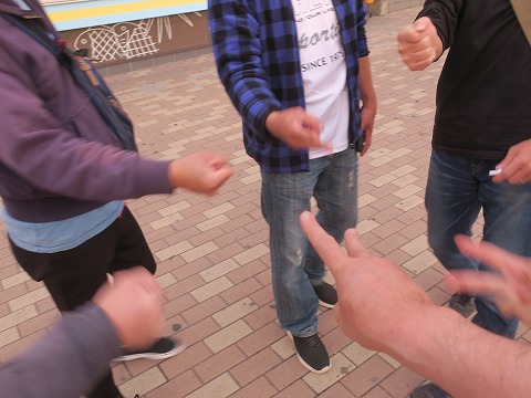 18:25 負けてしまった。 そして、負け決定戦。 パーを出して、負け。 思わず手を引っ込めてしまった。 (自分の手が写ってない) |