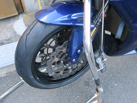 14:41 タイヤを交換 先週の16日(木)はエビスサーキットで走行会でした。 このCBRを買った時に装着していたユーズドのタイヤも終わっちゃいましたので、日曜日の昼下がりタイヤを交換します。 |