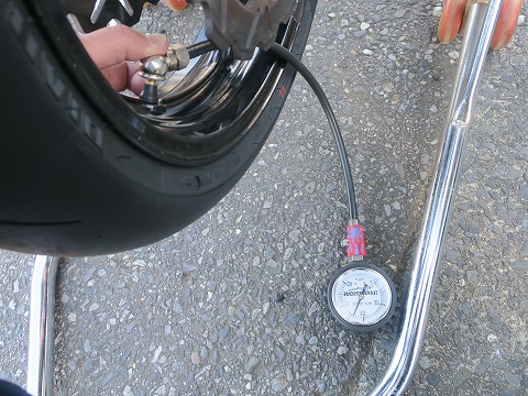 6:38 いの一番に バイクを降ろしたら、まずはタイヤ。 タイヤ ウォーマーをかける前にエアー圧をチェック。 先週、タイヤ交換とバルブも交換しているので、スロー パンクチャーが起きてるかもしれないし。 先週、タイヤを組んだときにちょっと高めに 230KPa 入れておきました。 今、チェックしても下がっている気配は無いので、大丈夫でしょう。 エアー圧を調整したら、とりあえずそのまま。 ウォーマーをかけるには、まだちと早いです。 |
