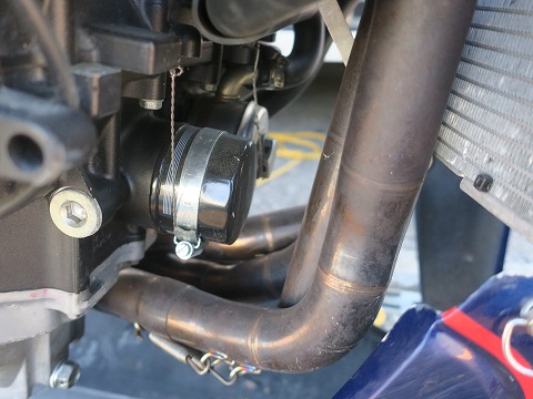 8:12 オイル交換を まあ、話だとこのCBR、変な人が乗っていたわけじゃない様だけど(前のオーナーは4耐ライダーだったと言う話)、ただメインテナンスの履歴がわかりません。 エビスの走行会も終わったので、走行前にオイル交換をしようかと。 思ってましたが、自分がストックしている純正のオイルフィルターは高さが高い。 ので、自分の持っているフィルターレンチを使おうとすると、エキパイに干渉してしまいます。 エキパイを外すには、ラジエータを外さないとダメ。 だと、時間がかかっちゃうので、走行前のオイル交換はあきらめて、走行後にオイル交換することにします。 |