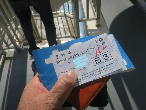 8:17 定点観測 8時を過ぎて朝1番の走行が始まりました。 朝イチの走行が始まると、走行券売り場も一段落して空いてきます。 ので、走行券を買いに行きます。 買いに行く途中、いつもの立ち位置から定点観測。 雲一つない良い天気だ。 暑くなりそうです。 |