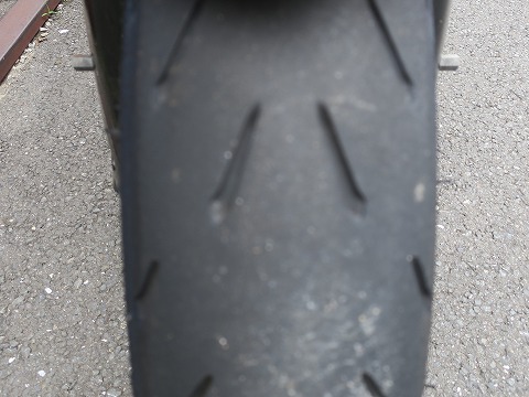 14:22 フロントタイヤも フロントタイヤはまあまあ溝が残っているんですが、雨降ったときに滑るとイヤだからね。 フロントがズルッとか滑ると、もうダメ。 ビビって涙が出てきます。(笑) |