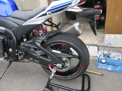 14:22 ガレージから 5月のツーリングでGSX-Rのタイヤがほぼ終わっていました。 ツーリングの後、サーキット通いが続いたので、GSX-Rはしばし放置プレイ状態。 6月に入り、時間が取れたので、交換したいと思います。 6月最初の日曜日、午前中は自宅の用事を済ませ、午後になってバイクをガレージから引っ張り出してきました。 |