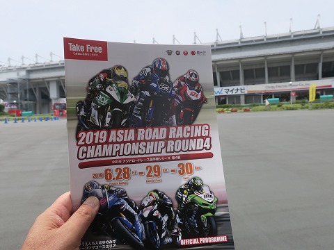 10:38 パンフレットは無料 SS600クラスの予選が終わったところで、メインスタンドをちょっと離脱。 サーキットの入口のところに、パンフレットが置いてありました。 パンフレットには今日のレースのタイム スケジュールとエントリー リスト、サーキットや各クラスの見所などが書いてあります。 左上に書いてあるように”FREE”。 全日本も8耐も、地方戦でも1,000円〜くらいしたんですけどね。 アジア選手権は興行として、上手くいっているんでしょう。 |