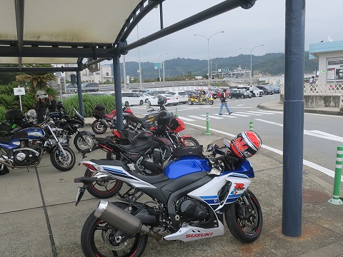 10:43 西湘パーキング 国道134号線を西走を続け、そのまま国道1号線のバイパスの西湘バイパスに接続し途中にある西湘パーキングまでやってきました。 ここで、ちょっと休憩。 いつもより、バイク少なめ。 夕方から雨予報が出てますからね。 |