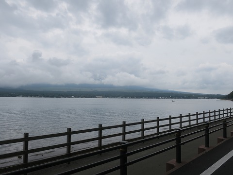 11:58 県道147号山中湖小山線(やまなかこ おやま せん) 足柄峠からは、静岡県道365号足柄峠線を下り小山町の市街地へ。 その後、県道147号線に入り山中湖方面を目指し北東に進みます。 三国峠を境に静岡県道147号線は山梨県に入り県道730号線に変わります。 三国峠を越えると、視界が広がり山中湖が現れます。 雲は多いものの山梨県側はそれほど天気は崩れてませんね。 目の前にあるはずの富士山は雲に隠れて見えませんが、他の人を真似て路肩にバイクを停め、山中湖の写真を撮っておきます。 |