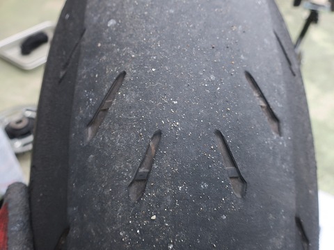 15:30 リヤタイヤは ここまでのリヤタイヤは、結構スリップマークが見えちゃってる。 まだ、もう少し走れそうだけどね。 ロング ツーリングの途中で溝が無くなるのも困るし。 タイヤの残溝気にして走るのも嫌なので、ちょっと勿体ない気はしますが、捨てちゃいます。 自分でタイヤ交換しているから、工賃とかはかからないけど、もう捨ててもいいですよね。(笑) |