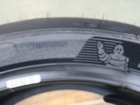 16:41 フロントのローテーション マークは フロント側もローテーション マークを確認。 リヤタイヤのローテーション マークは左向きだったけど、フロント タイヤのは右向きなんだね。 特に理由はないけど、今気付いた。(笑) |